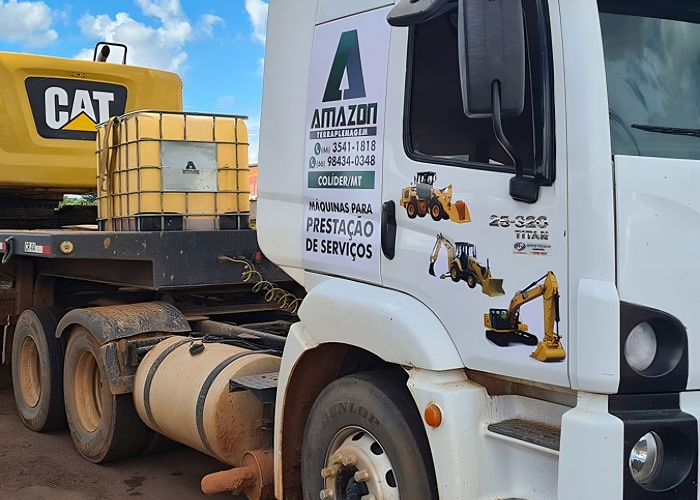 O caminhão prancha é um veículo essencial para a logística de obras de terraplenagem. Equipado com uma plataforma rebaixada e robusta, ele é projetado para transporte seguro de máquinas pesadas.